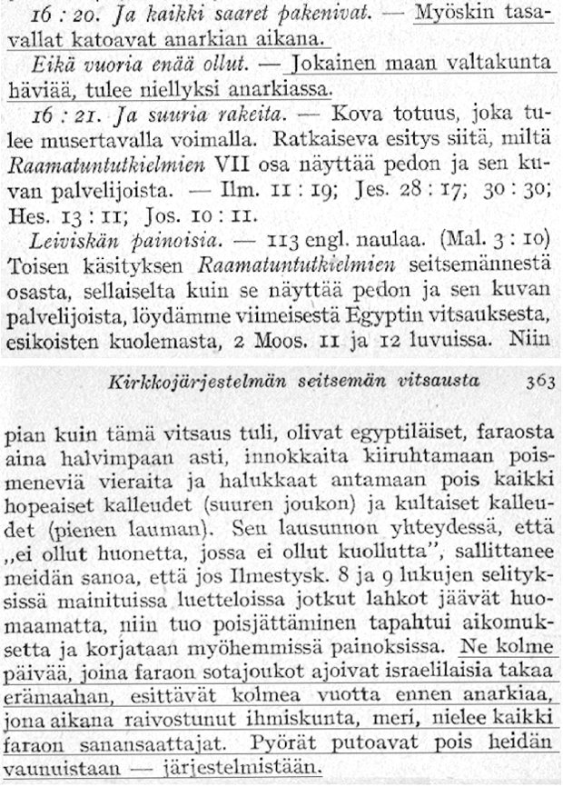 Sotkemalla Jumala ja Kristus tehtyihin virheisiin mukaan ja panemalla Jumala "mitätöimään" tietyt ennustukset saatiin kätevästi pakotie: Ei tarvinnut kantaa todellista vastuuta siitä, että oli esitetty väärin "Jumalan ajankohtina" asioita, jotka eivät olleet muuta kuin pelkän luvattoman ihmisspekulaation tulosta. ![]() Jopa vääristä ennustuksista löydetään ansiota, koska ne tuottivat "kannustavaa ja pyhittävää vaikutusta", jotta Herraa voitiin ylistää "jopa virheen vuoksi". Tämä asenne mahdollisti vielä lisää vääriä ennustuksia "kannustavine" vaikutuksineen. Mieleen muistuu tosi profeetan esittämät Jumalan sanat: Voi