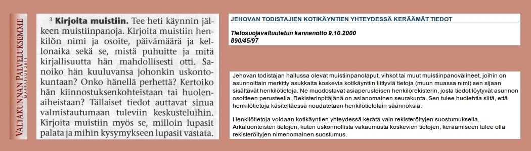 Tietosuojavaltuutetun lausunto Jehovan todistajien valituksesta 10.01.2014