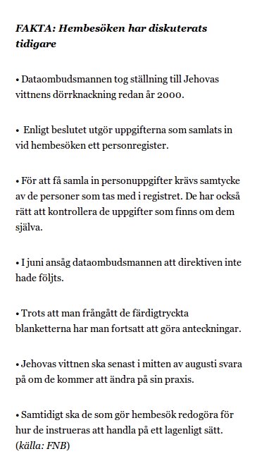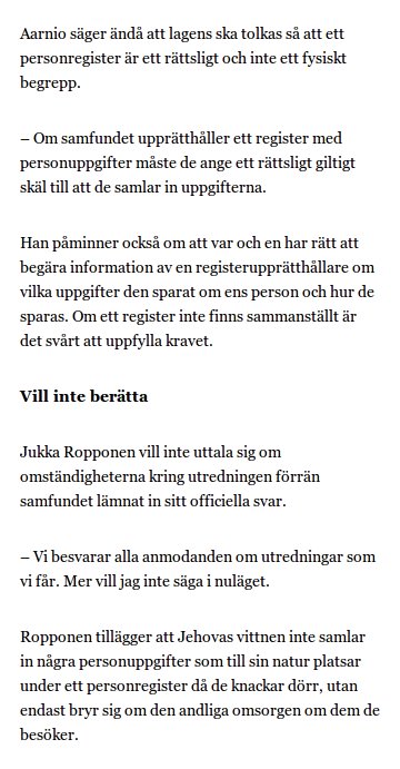 Tutkintapyyntö tietosuojavaltuutetulle 26.11.2011 Selvityspyyntö Jehovan todistajien haaratoimistoon 14.12.2011 Jehovan todistajien haaratoimiston antama selvitys 26.01.2012 Johanneksen pojan kommentit haaratoimiston antamaan vastaukseen 23.02.2012 Tietosuojavaltuutetun lopullinen päätös 05.06.2012 Takaisin etusivulle |
