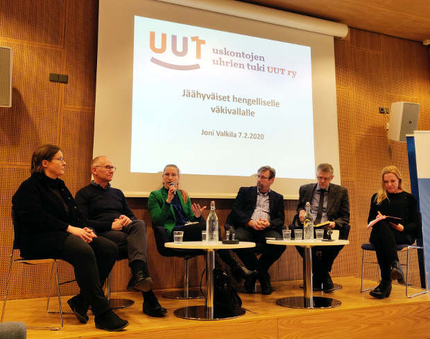 Tämä uskonnollisten ryhmien sisäinen väkivalta on tunnettu ja tunnustettu ilmiö. Siitä on ilmestynyt lukuisa määrä tutkimuksia, raportteja ja kuvauksia niin Suomessa kuin kansainvälisestikin. Tiedetään varsin hyvin, mistä hengellisessä väkivallassa on kysymys; mikä sen aiheuttaa ja millaisia seurauksia sillä on. Väkivalta voi olla luonteeltaan fyysistä tai henkistä; se voi laajeta koskettamaan muitakin kuin väkivallan suoria kohteita ja se voi olla luonteeltaan ylisukupolvista. Vaikka ilmiö on tiedostettu, siihen ei ole juuri puututtu, eikä sen suhteen ole juuri kehitetty toimintatapoja, ratkaisumalleja tai sanktioinnin muotoja. Tarve väkivallan ratkaisuille on ilmeinen: väkivalta voi olla seurauksiltaan hyvin vakavaa niin väkivallan varsinaisille kohteille kuten myös heidän läheisilleen. Myös yhteiskunnallisesta näkökulmasta on tarpeellista löytää ratkaisuja väkivallan olemassaoloon; on kestämätöntä, jos yhteiskunnassa harjoitetaan sanktioimatonta väkivaltaa. Uskonnollisten liikkeiden kannalta on kyse arkaluonteisesta ja monitulkintaisesta asiasta, joka haastaa liikkeiden itseymmärrystä omasta roolistaan hengellisen sanoman välittäjinä ja tulkitsijoina. Väkivallan olemassaolo näyttäytyykin hyvin eri tavalla liikkeiden kannalta kuin väkivallan kohteiden tai yhteiskunnan näkökulmasta. Myös uskonnollisten liikkeiden sisällä on halua kohdata väkivallan tematiikka. Seminaarissa pyritään pohtimaan väkivallan ratkaisun problematiikkaa. Seminaarissa käsitellään ratkaisuprosessien tavoitteita, ratkaisuun liittyviä ongelmia ja ratkaisun lähtökohtia. Kyse ei ole niinkään valmiiden ratkaisumallien esittelystä tai etsimisestä, vaan pikemminkin ratkaisun reunaehtojen ja tavoitteiden hahmottelusta. Lähde: UUT ![]() Paneeliin osallistuivat: